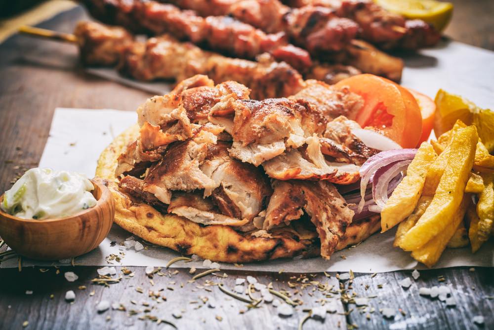 Malse kipgyros in een warme pita met onze kruidige signature saus en frisse tzatziki